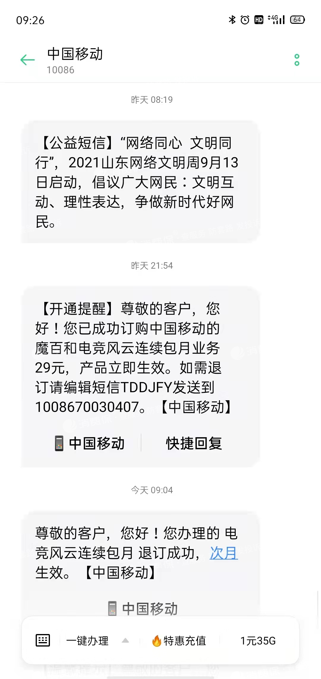 山东移动短信多少钱一条